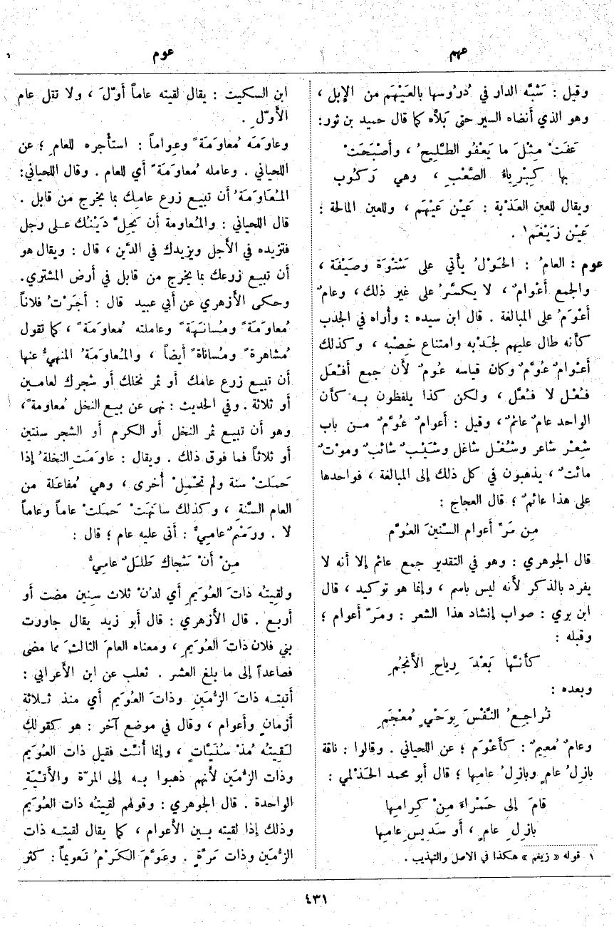 من الْجَوْهَرِيُّ: وَهُوَ فِي التَّقْدِيرِ جَمْعُ عَائِمٍ إِلَّا أَنه لَا يُفْرَدُ بِالذِّكْرِ لأَنه لَيْسَ بِاسْمٍ، وَإِنَّمَا هُوَ تَوْكِيدٌ، قَالَ ابْنُ بَرِّيٍّ: صَوَابُ إِنْشَادِ هَذَا الشِّعْرِ: ومَرّ أَعوام؛ وَقَبْلَهُ: