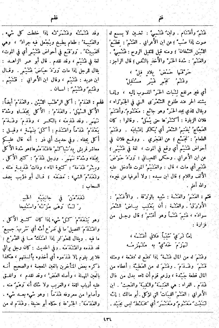 غذم: الغَذْمُ: أَكل الرَّطْب اللَّيِّن. والغَذْمُ أَيضاً: الأَكل السَّهْلُ. والغَذْمُ: الأَكل بِجَفَاءٍ وَشِدَّةِ نَهَمٍ. وَقَدْ غَذِمَه، بِالْكَسْرِ، وغَذِمَ وغَذَمَ يَغْذُمُ غَذْماً واغْتَذم: أَكَلَ بنَهْمةٍ، وَقِيلَ: أَكل بِجفاء. وَفِي حَدِيثِ