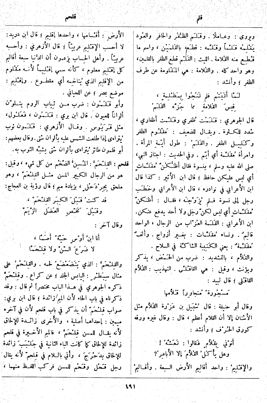 وَيُرْوَى: وَعَامِلًا. وقَلَم الظُّفُر وَالْحَافِرَ والعُود يَقْلِمُه قَلْماً وقَلَّمَه: قطَعه بالقَلَمَيْن، وَاسْمُ مَا قُطِع مِنْهُ القُلامة. اللَّيْثُ: القَلْم قَطْعُ الظُّفُرِ بِالْقَلَمَيْنِ، وَهُوَ وَاحِدٌ كُلُّهُ. والقُلامة: هِيَ المَقْلومة عَنْ طَرَفِ الظُّفُرِ؛ وأَنشد: