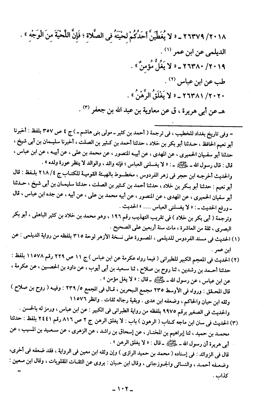 2018/ 26379 - "لا يُغَطِّيَنَّ أحَدُكُمْ لِحْيَتَهُ فِي الصَّلاة؛ فَإِن اللحْيَةَ مِنَ الْوَجْهِ".
