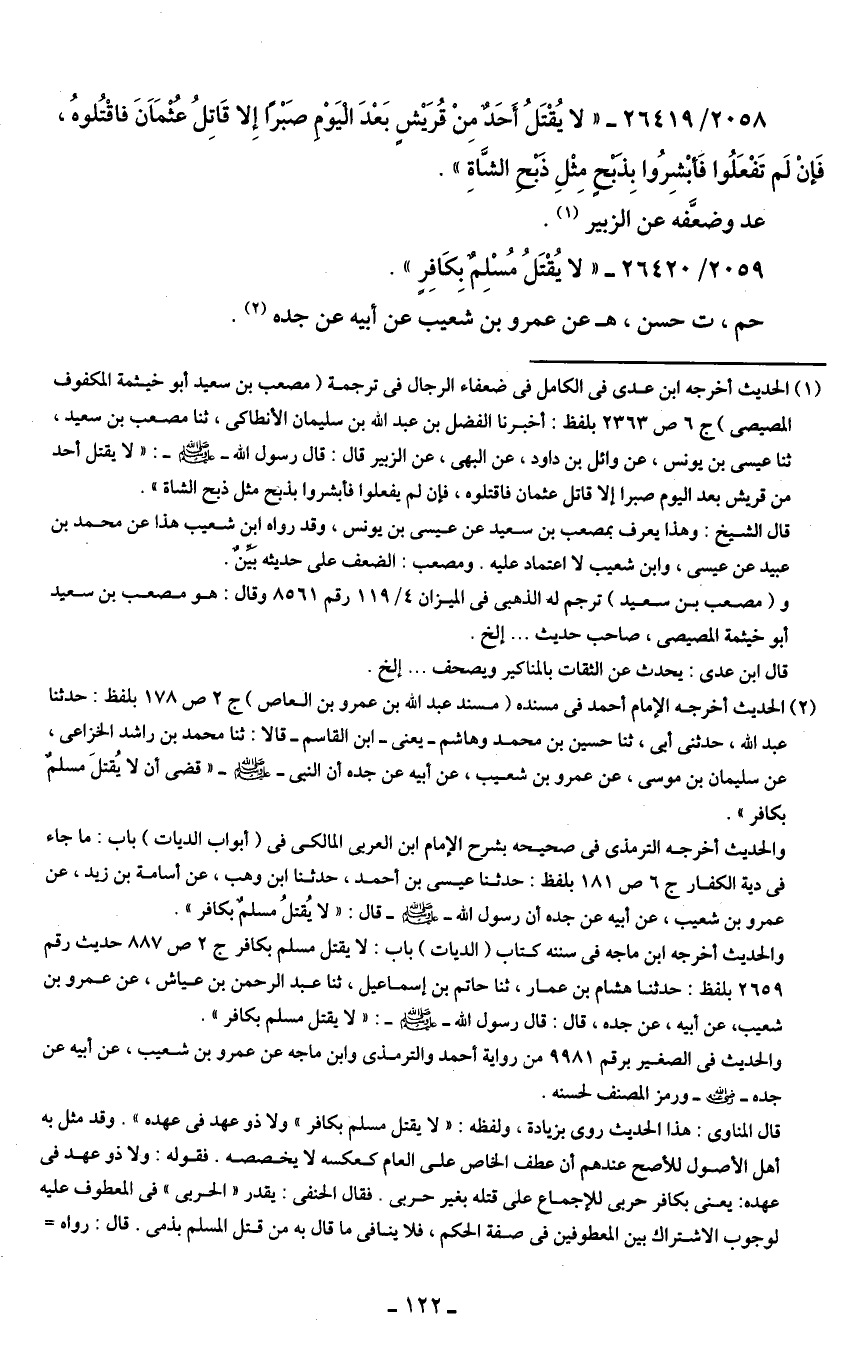 2059/ 26420 - "لا يُقْتَلُ مُسْلِمٌ بِكَافِرٍ".
