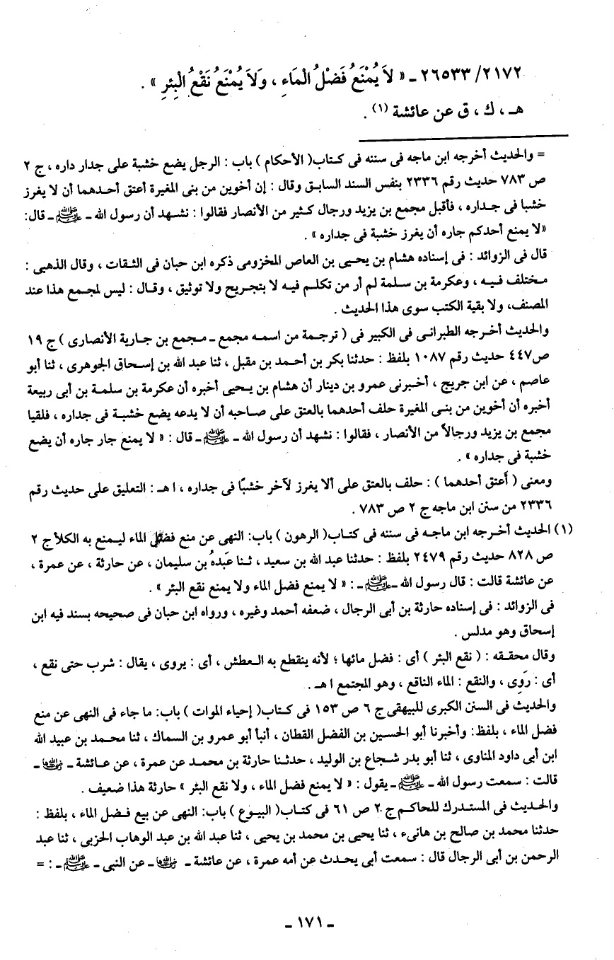 2172/ 26533 - "لَا يُمْنَعُ فَضْلُ المَاءِ، وَلَا يُمْنَعُ نَقعُ البِئرِ".