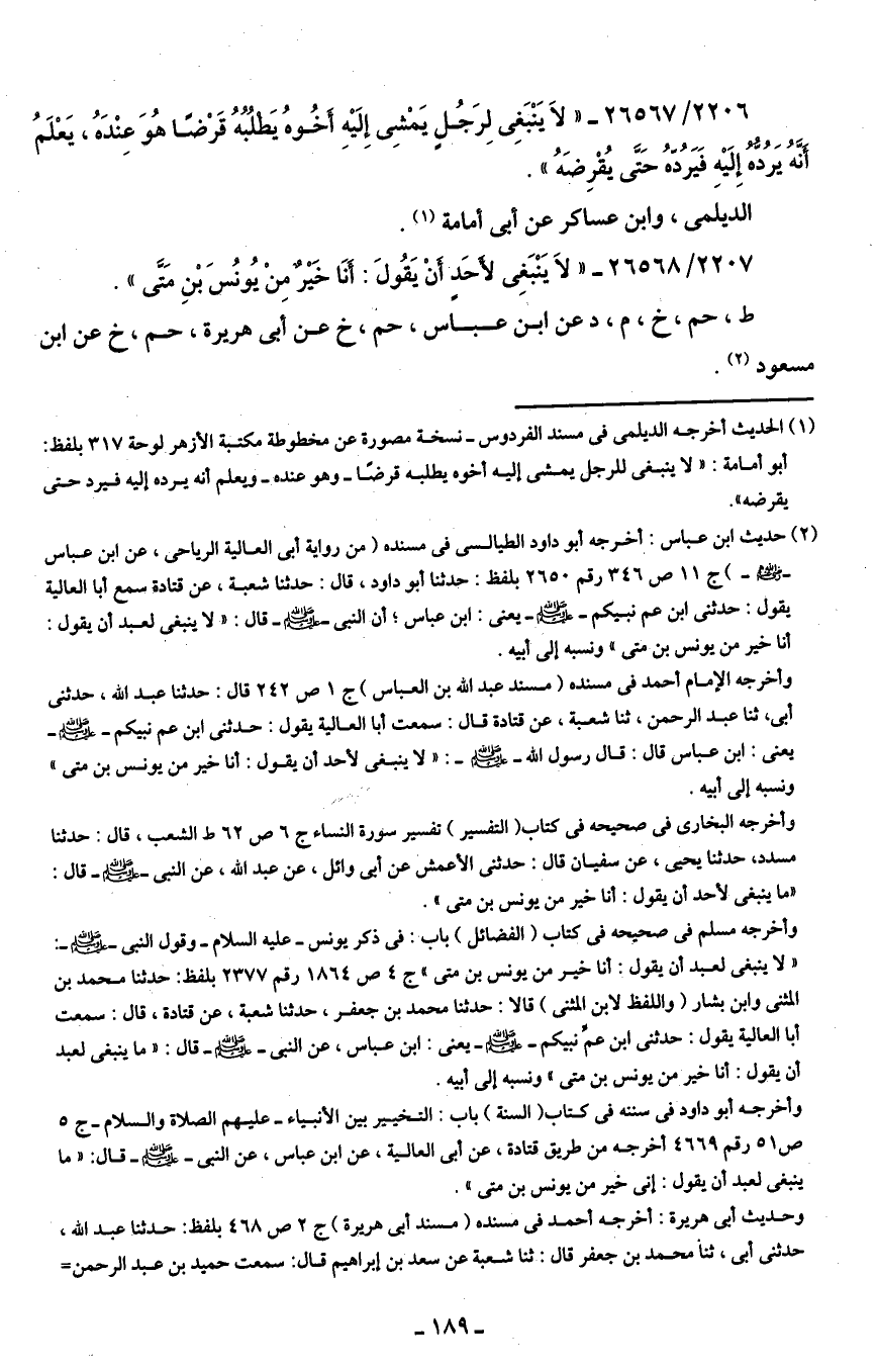 2207/ 26568 - "لَا يَنْبَغِي لأحَدٍ أنْ يَقُولَ: أنَا خَيرٌ منْ يُونُسَ بْنِ مَتَّى".