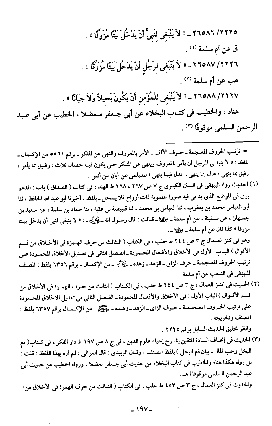 2226/ 26587 - "لَا يَنْبَغِي لِرَجُلٍ أَنْ يَدْخُلَ بَيتًا مُزَوَّقًا".