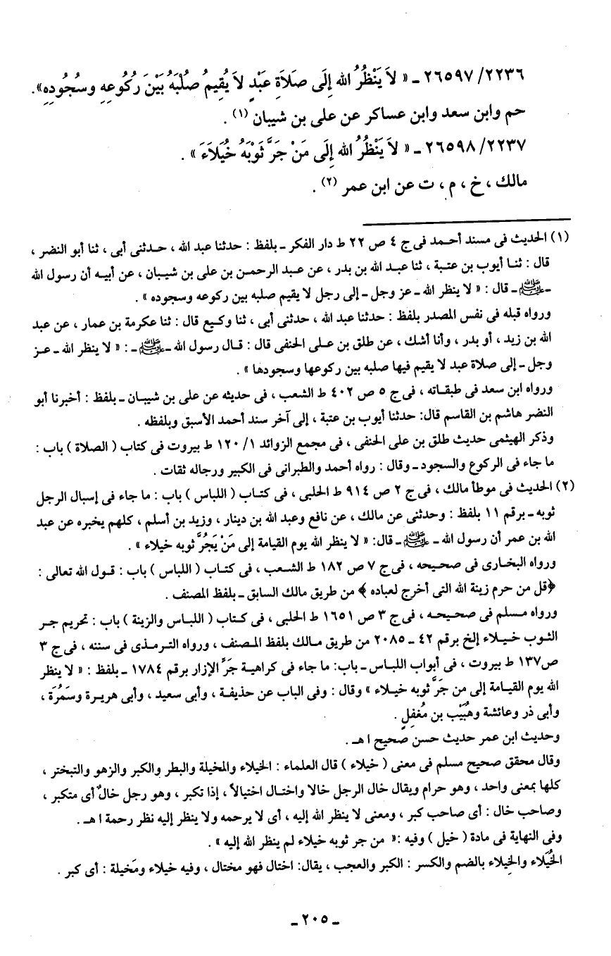 2237/ 26598 - "لَا يَنْظُرُ الله إِلَى مَنْ جَرَّ ثَوْبَهُ خيُلَاءَ".