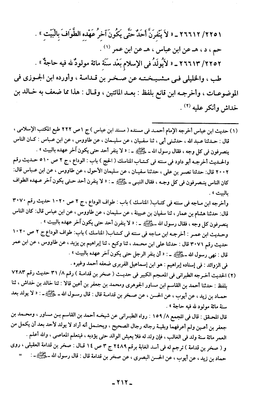 2251/ 26612 - "لَا يَنْفِرَنَّ أحَدٌ حَتَّى يَكُونَ آخِرُ عَهْدِهِ الطَّوَافَ بِالْبَيتِ".