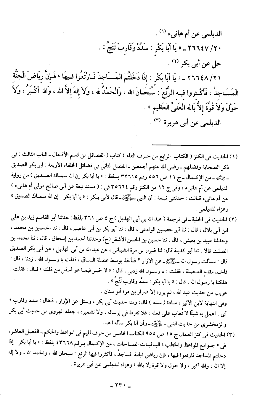 20/ 26647 - "يَا أَبَا بَكْرٍ: سَدِّدْ وَقَارِبْ تَنْجُ".