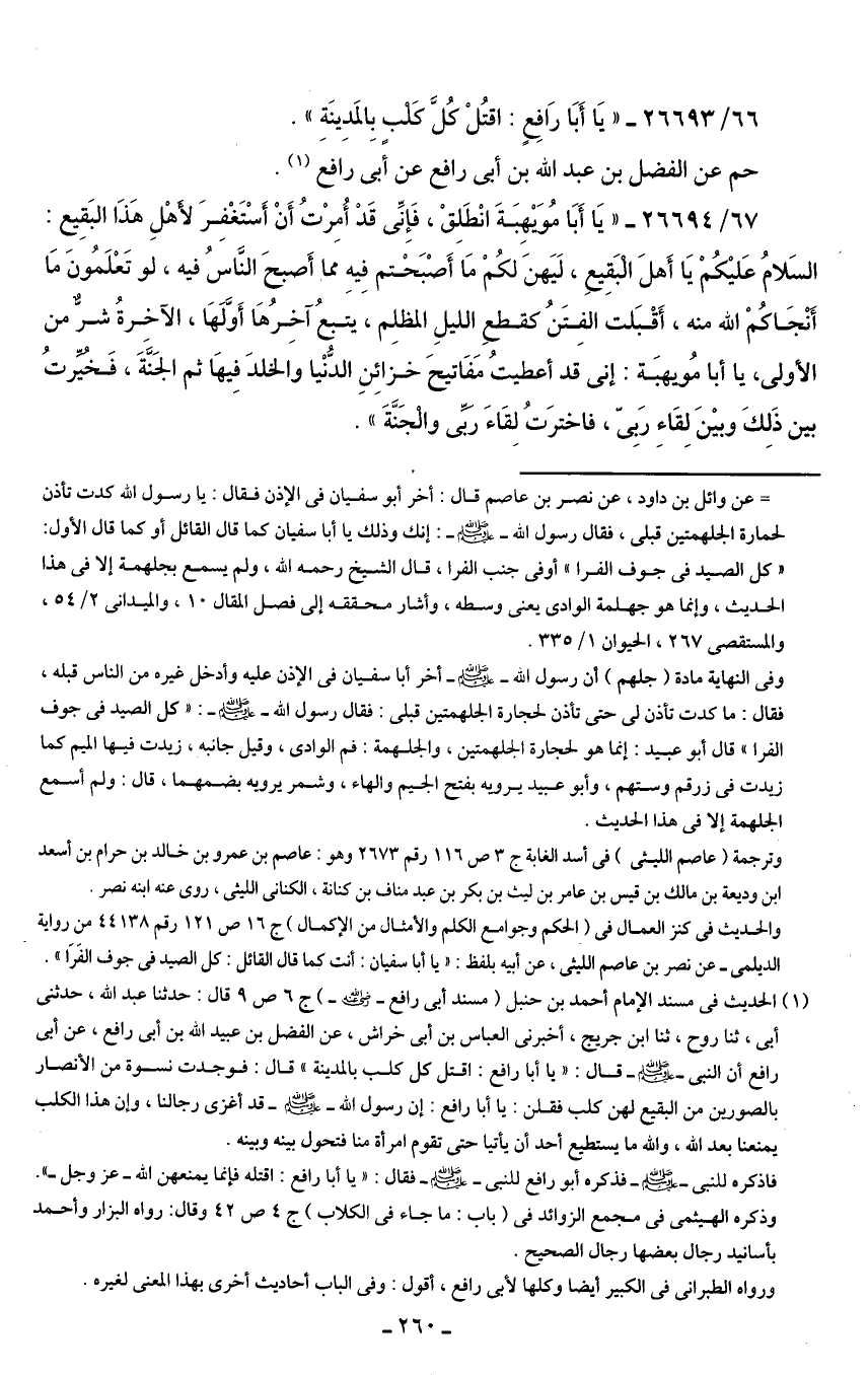 66/ 26693 - "يَا أَبَا رَافِعٍ: اقتُلْ كُلَّ كَلْبٍ بِالمَدِينَةِ".