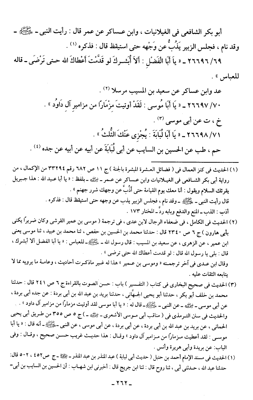 70/ 26697 - "يَا أَبَا مُوسى: لَقَدْ أوتيتَ مِزْمَارًا من مزاميرِ آلِ دَاوُد".