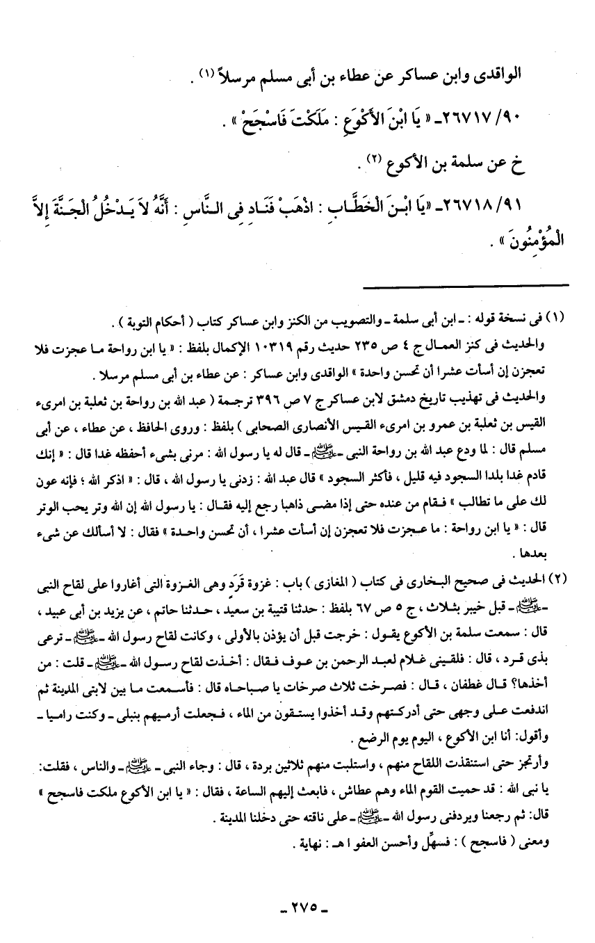 90/ 26717 - "يَا ابْنَ الأَكْوَعِ: مَلَكْتَ فَاسْجَحْ".