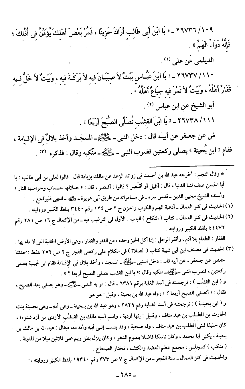 111/ 26738 - "يَا ابْنَ القِشْبِ تُصَلِّى الصُّبْحَ أرْبَعًا".