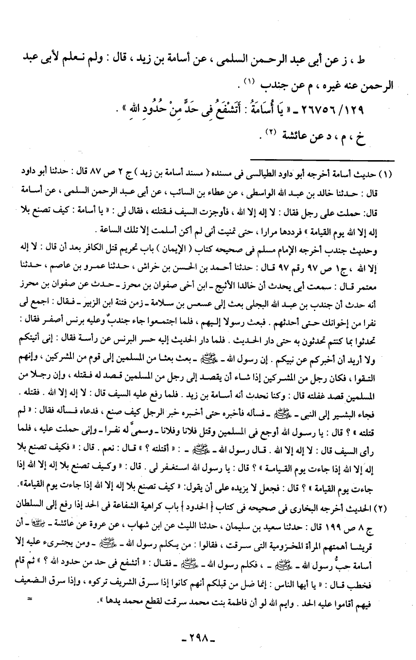 129/ 26756 - " يَا أُسَامَةُ: أَتَشْفَعُ فِى حَدٍّ مِنْ حُدُودِ اللهِ ".
