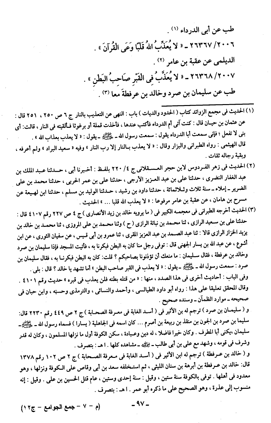 2007/ 26368 - "لا يُعَذَّبُ فِي الْقَبْرِ صَاحِبُ البَطنِ".