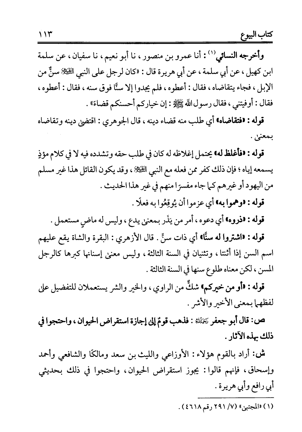 ش: أراد بالقوم هؤلاء: الأوزاعي والليث بن سعد ومالكًا والشافعي وأحمد وإسحاق، فإنهم قالوا: يجوز استقراض الحيوان، واحتجوا في ذلك بحديثي أبي رافع وأبي هريرة.