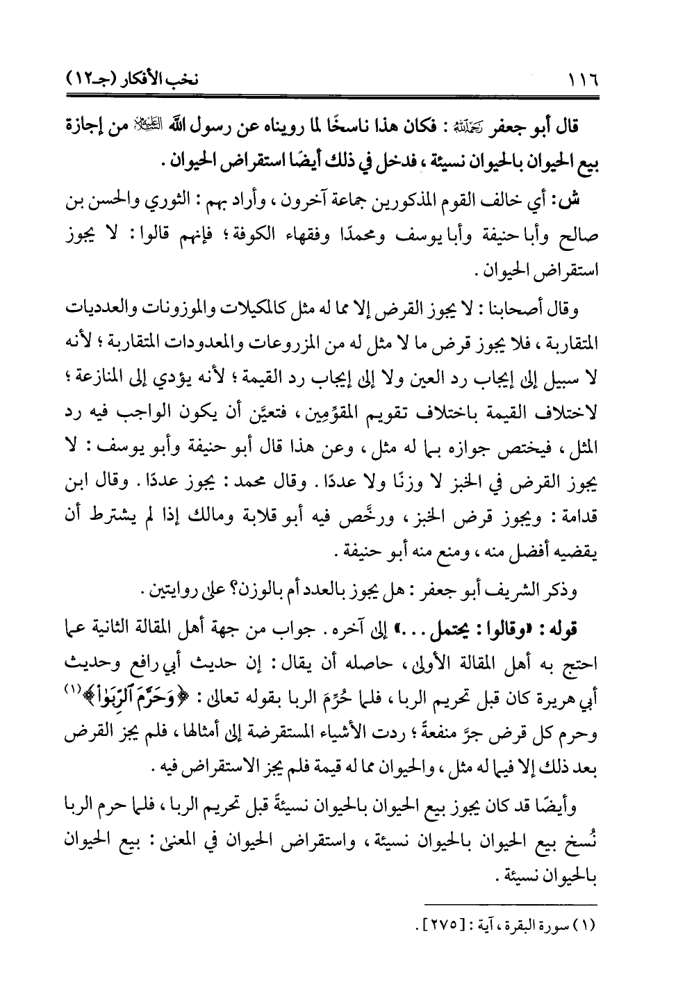 قال أبو جعفر -رحمه الله-: فكان هذا ناسخًا لما رويناه عن رسول الله -عليه السلام- من إجازة بيع الحيوان بالحيوان نسيئة، فدخل في ذلك أيضًا استقراض الحيوان.