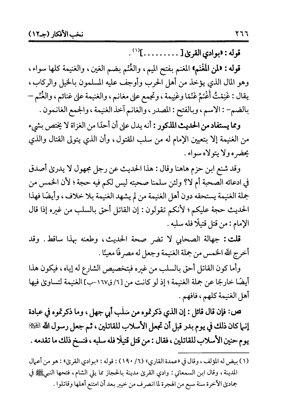 وأما كون القاتل أحق بالسلب من غيره فبتخصيص الشارع له إياه، فيكون هذا أيضًا خارجًا عن جملة الغنيمة؛ إذ لو كانت من الغنيمة لتساوى فيها أهل الغنيمة كلهم، فافهم.