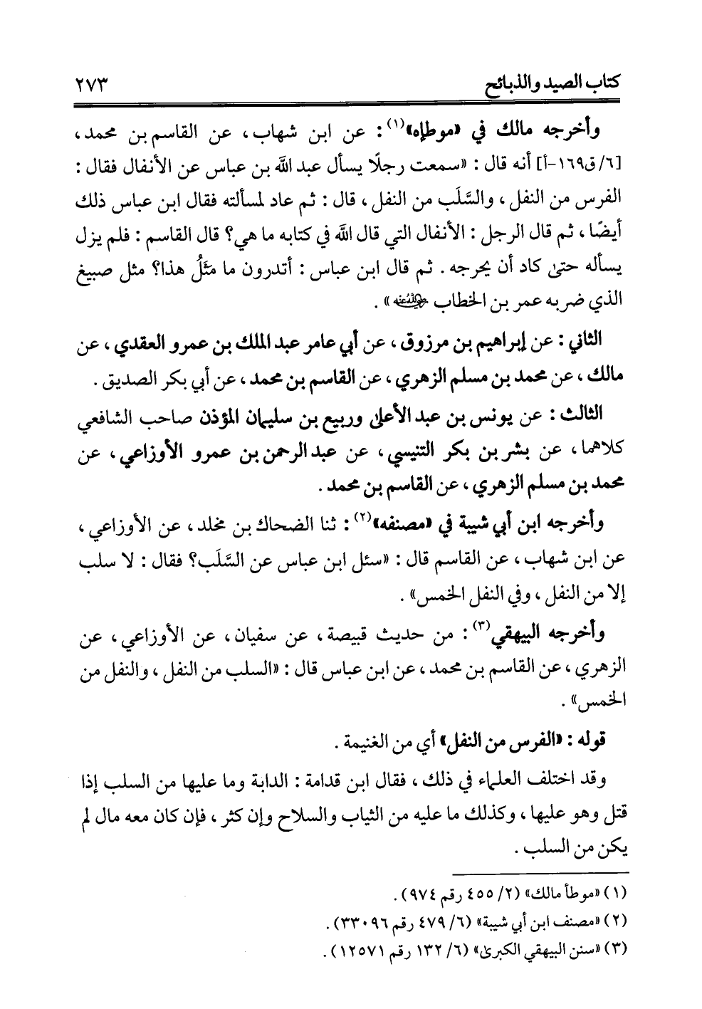 وأخرجه البيهقي (¬3): من حديث قبيصة، عن سفيان، عن الأوزاعي، عن الزهري، عن القاسم بن محمد، عن ابن عباس قال: "السلب من النفل، والنفل من الخمس".