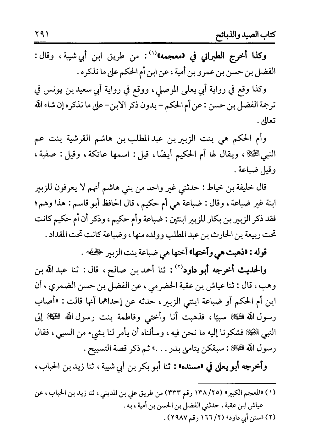 وكذا وقع في رواية أبي يعلى الموصلي، ووقع في رواية أبي سعيد بن يونس في ترجمة الفضل بن حسن: عن أم الحكم -بدون ذكر الابن- على ما نذكره إن شاء الله تعالى.