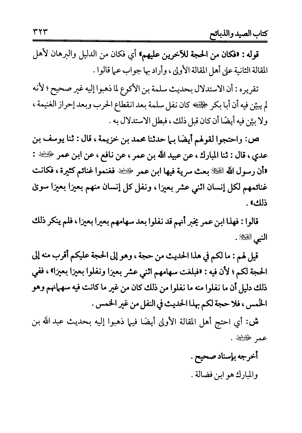 قالوا: فهذا ابن عمر يخبر أنهم قد نفلوا بعد سهامهم بعيرًا بعيرًا، فلم ينكر ذلك النبي -عليه السلام-.