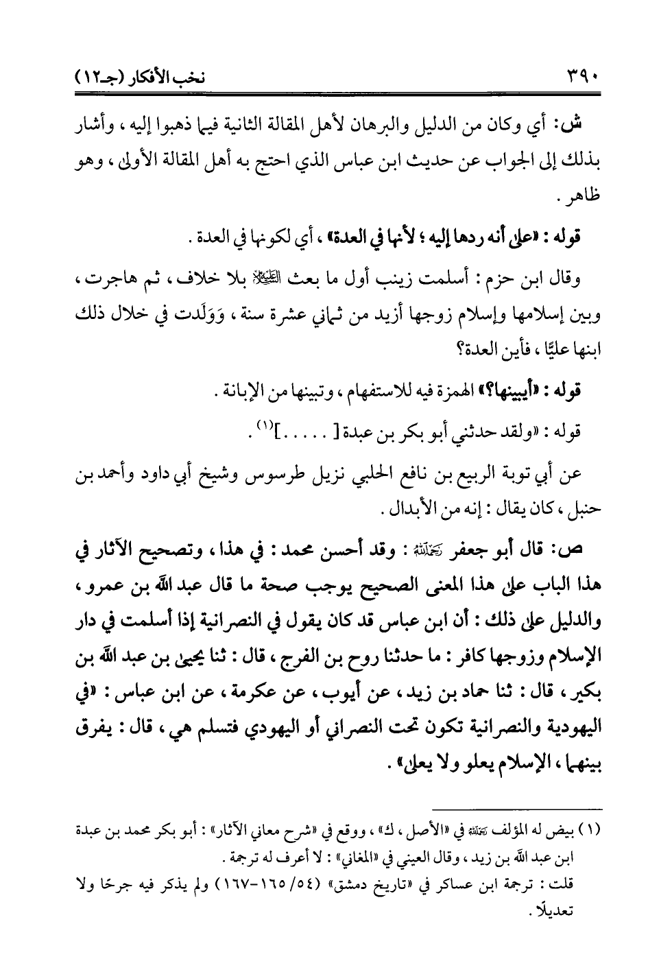 كتاب نخب الأفكار في تنقيح مباني الأخبار في شرح معاني الآثار (اسم الجزء: 12)