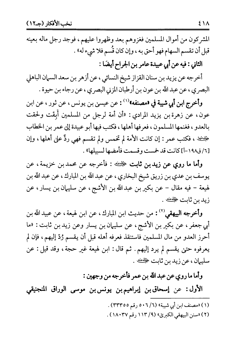 (¬2) "سنن البيهقي الكبرى" (9/ 113 رقم 18037).
