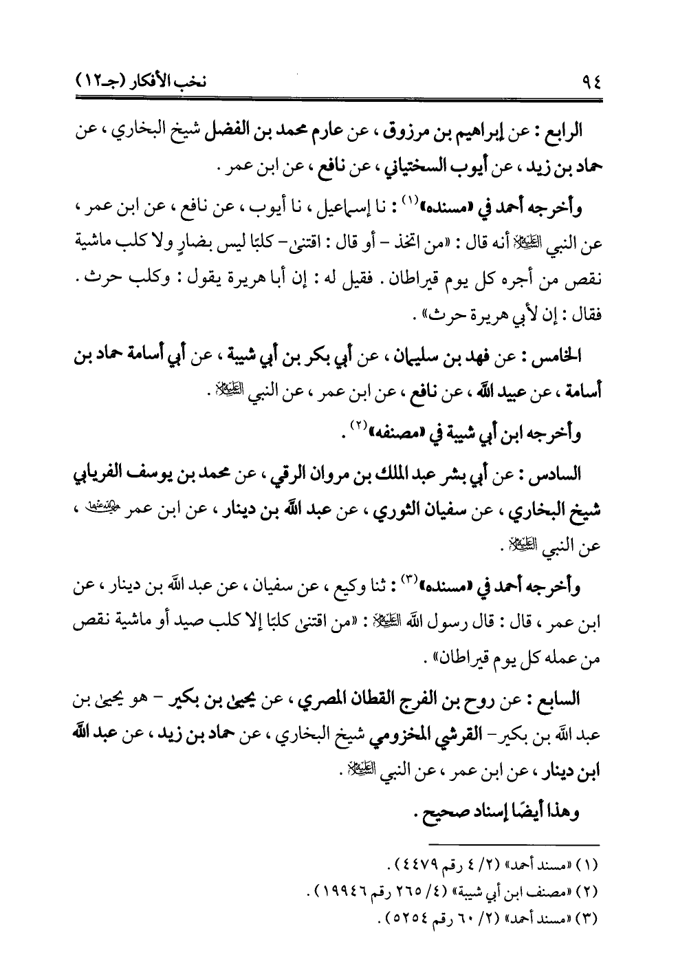 الخامس: عن فهد بن سليمان، عن أبي بكر بن أبي شيبة، عن أبي أسامة حماد بن أسامة، عن عبيد الله، عن نافع، عن ابن عمر، عن النبي -عليه السلام-.