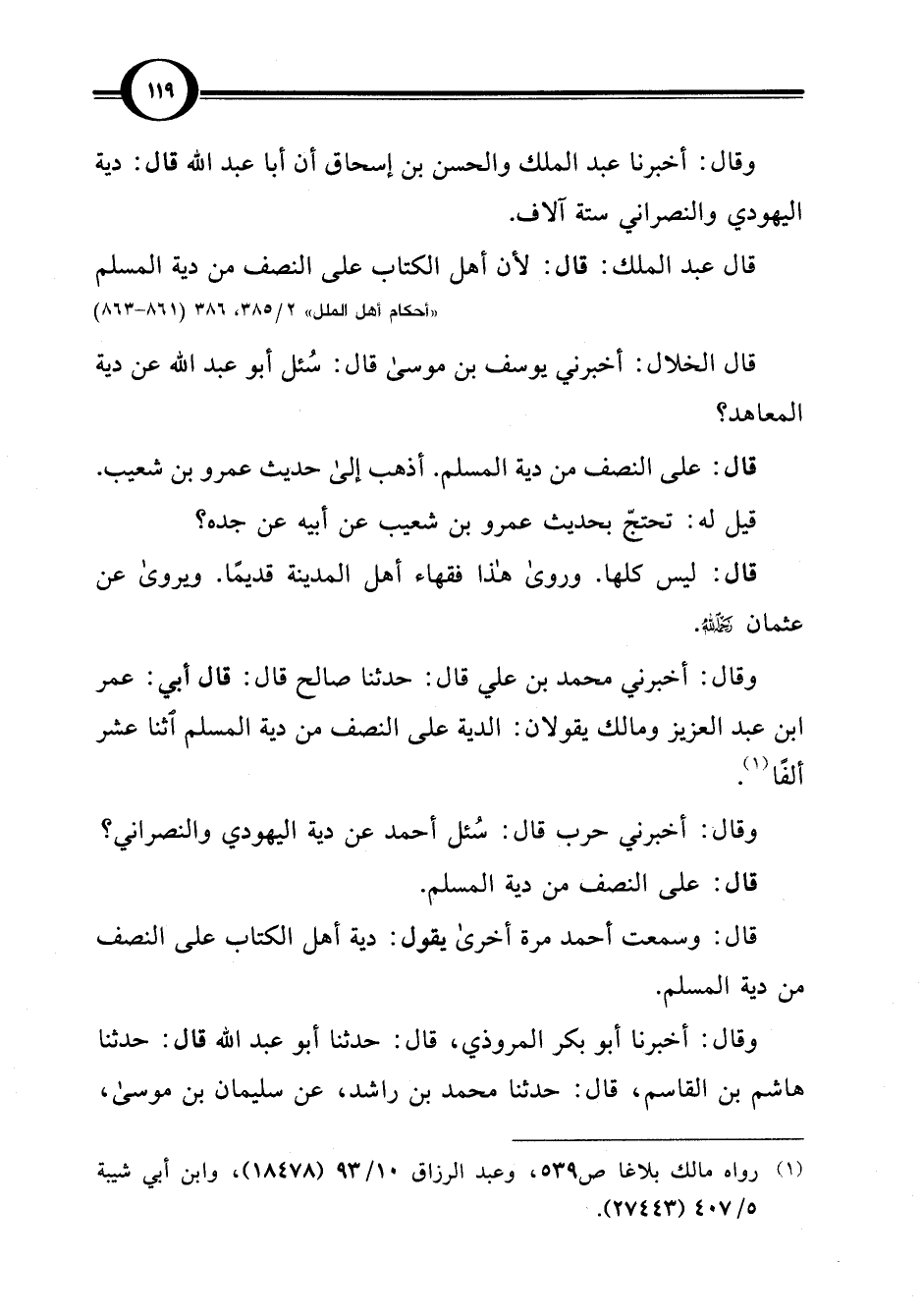 وقال: أخبرني حرب قال: سُئل أحمد عن دية اليهودي والنصراني؟