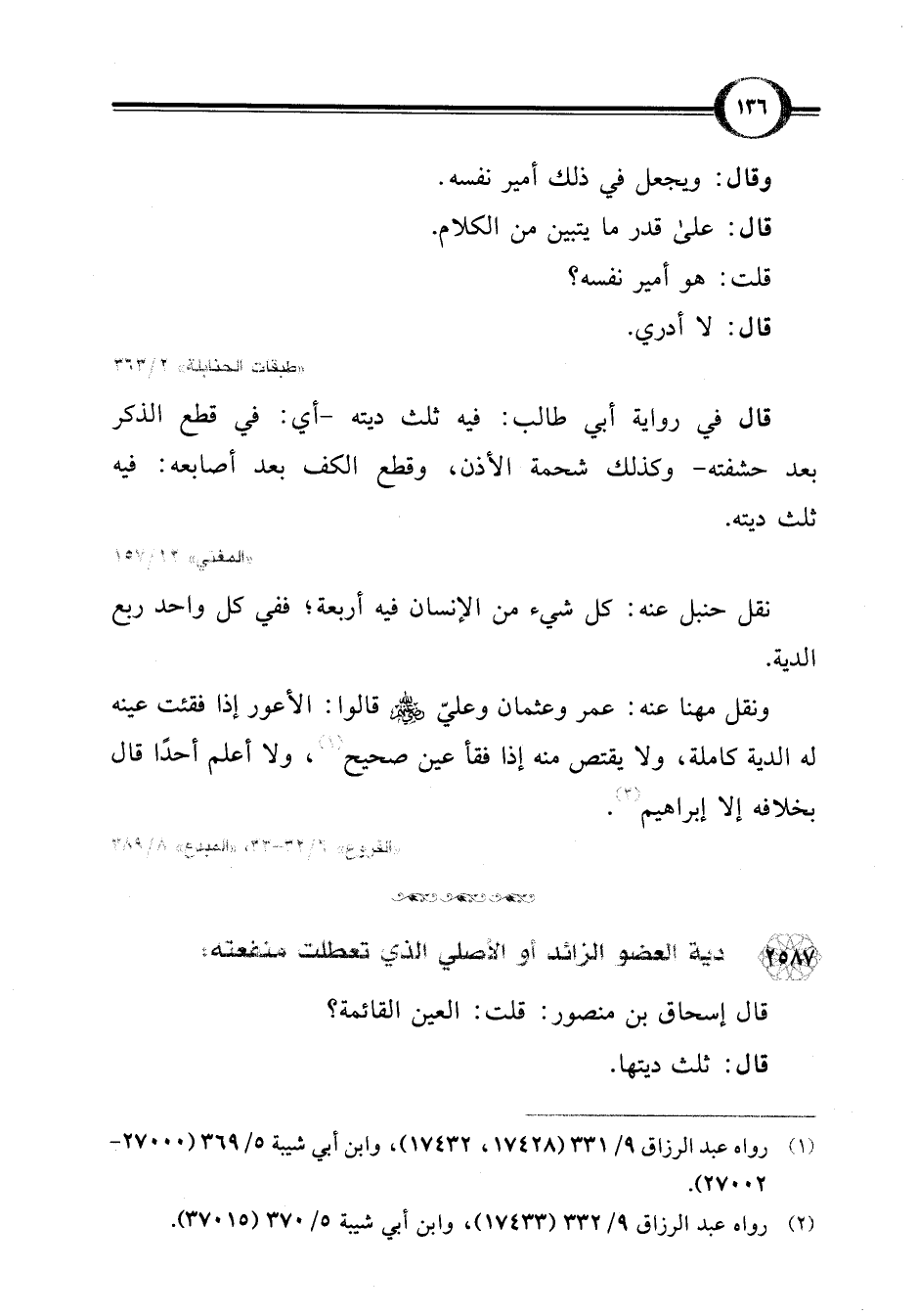 2587 - دية العضو الزائد أو الأصلي الذي تعطلت منفعته: