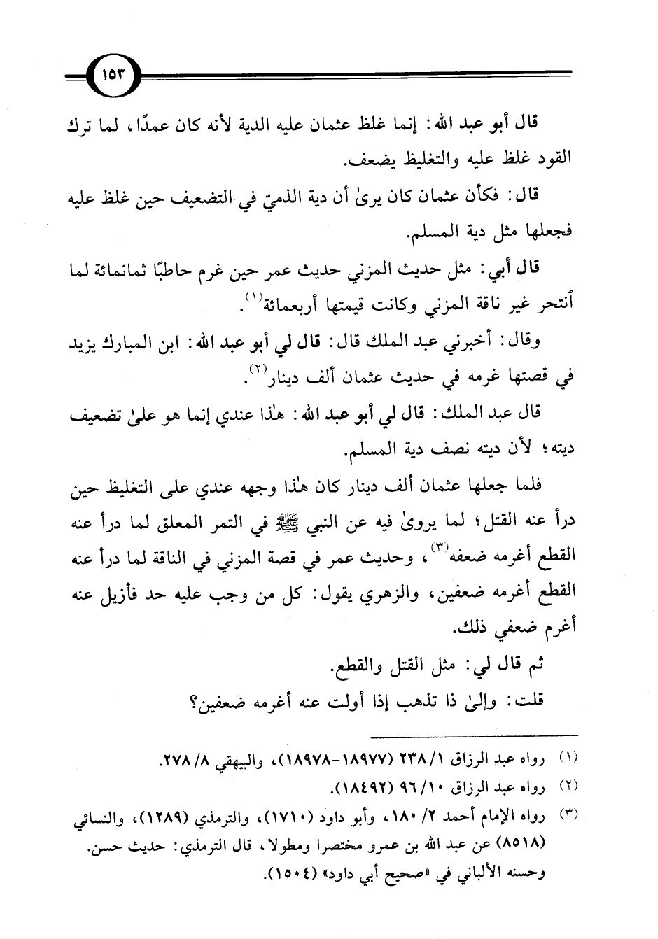 قال: فكأن عثمان كان يرى أن دية الذميّ في التضعيف حين غلظ عليه فجعلها مثل دية المسلم.