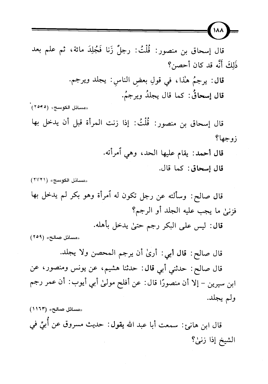 قال ابن هانئ: سمعت أبا عبد اللَّه يقول: حديث مسروق عن أُبيِّ في الشيخ إذا زنى؟