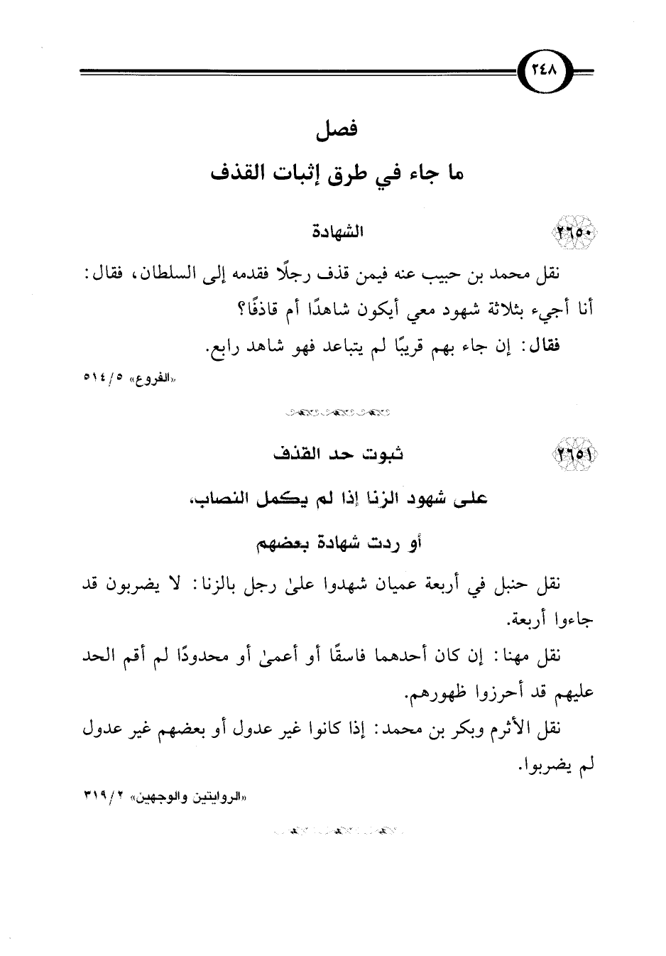 نقل حنبل في أربعة عميان شهدوا على رجل بالزنا: لا يضربون قد جاءوا أربعة.