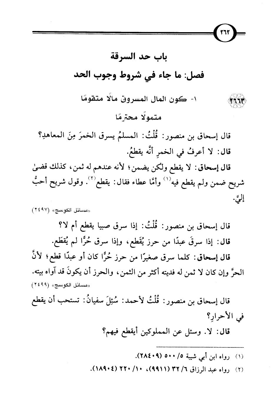 قال إسحاق بن منصور: قُلْتُ: المسلمُ يسرق الخمرَ مِنَ المعاهدِ؟