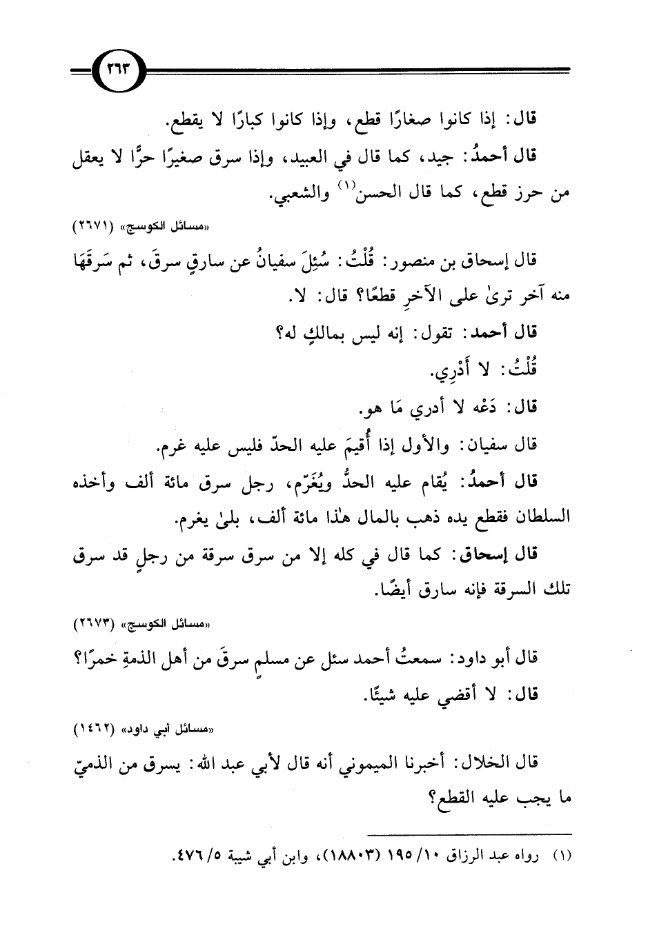 قال أبو داود: سمعتُ أحمد سئل عن مسلمٍ سرقَ من أهل الذمةِ خمرًا؟