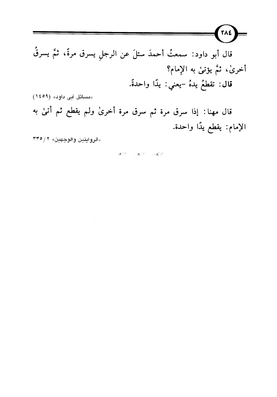 قال أبو داود: سمعتُ أحمدَ سئلَ عن الرجلِ يسرق مرةً، ثم يسرقُ أخرى، ثم يؤتى به الإِمام؟