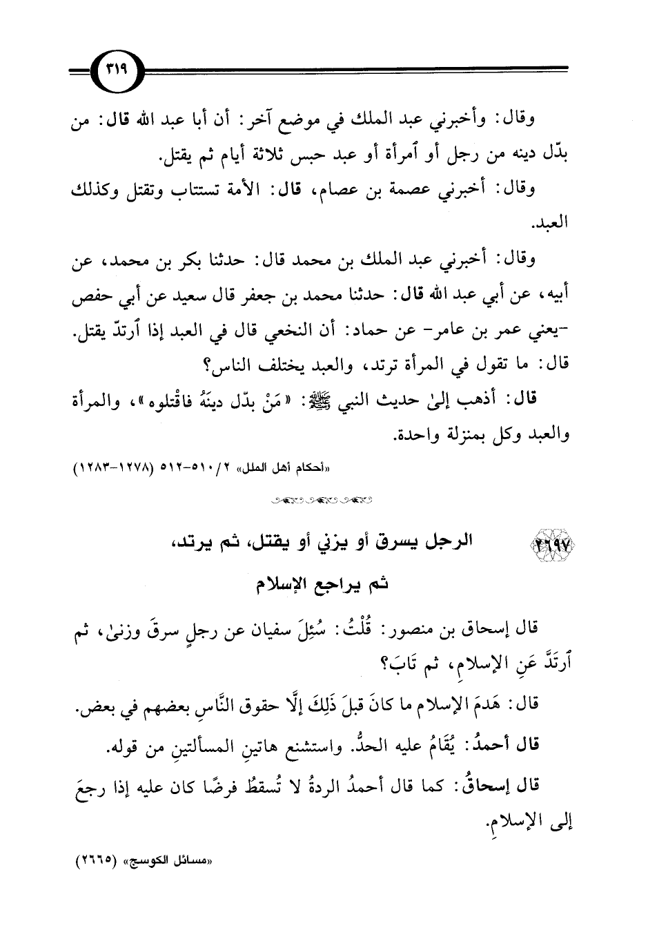 2697 - الرجل يسرق أو يزني أو يقتل، ثم يرتد، تم يراجع الإسلام