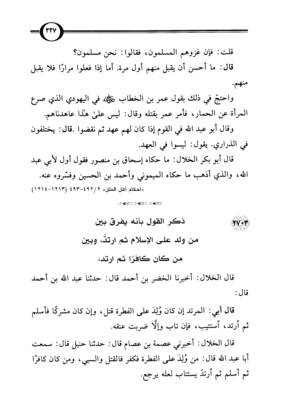 "أحكام أهل الملل" 2/ 492 - 493 (1213 - 1214)