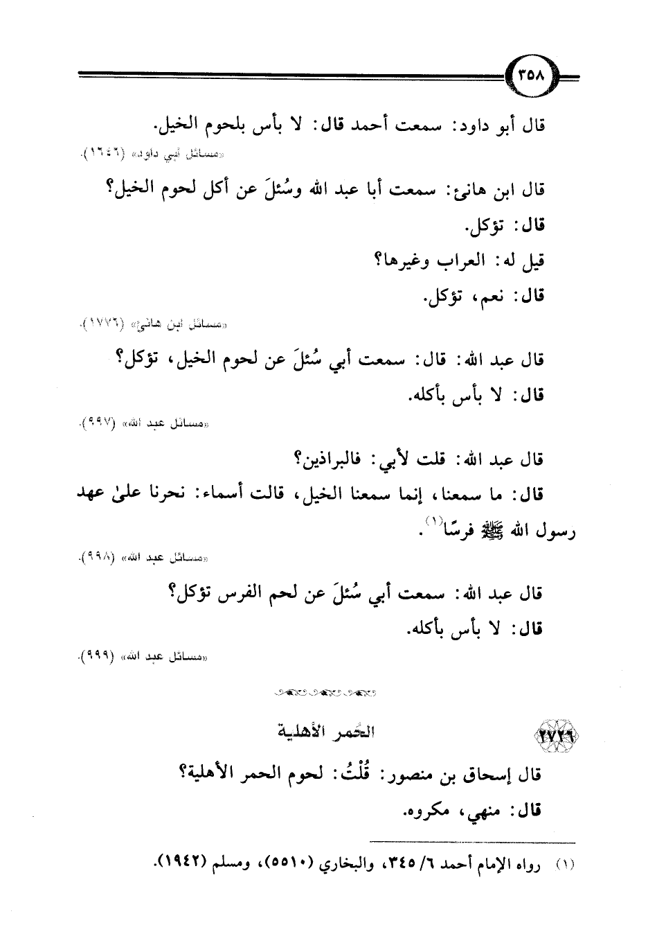 قال إسحاق بن منصور: قُلْتُ: لحوم الحمر الأهلية؟