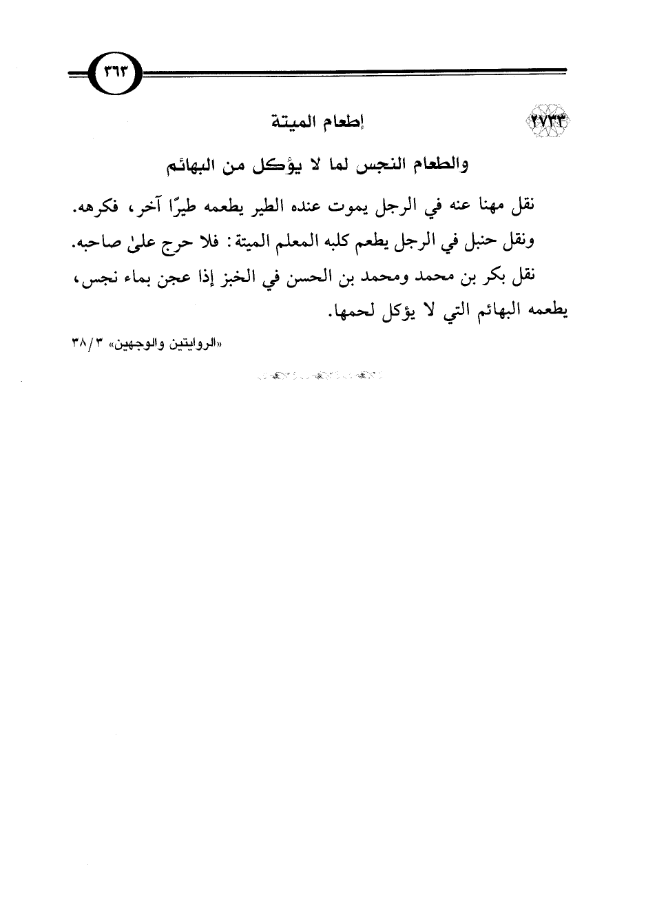 2733 - إطعام الميتة والطعام النجس لما لا يؤكل من البهائم