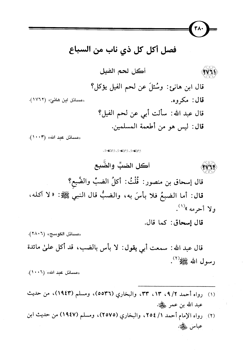قال إسحاق بن منصور: قُلْتُ: أكلُ الضبِّ والضَّبعِ؟