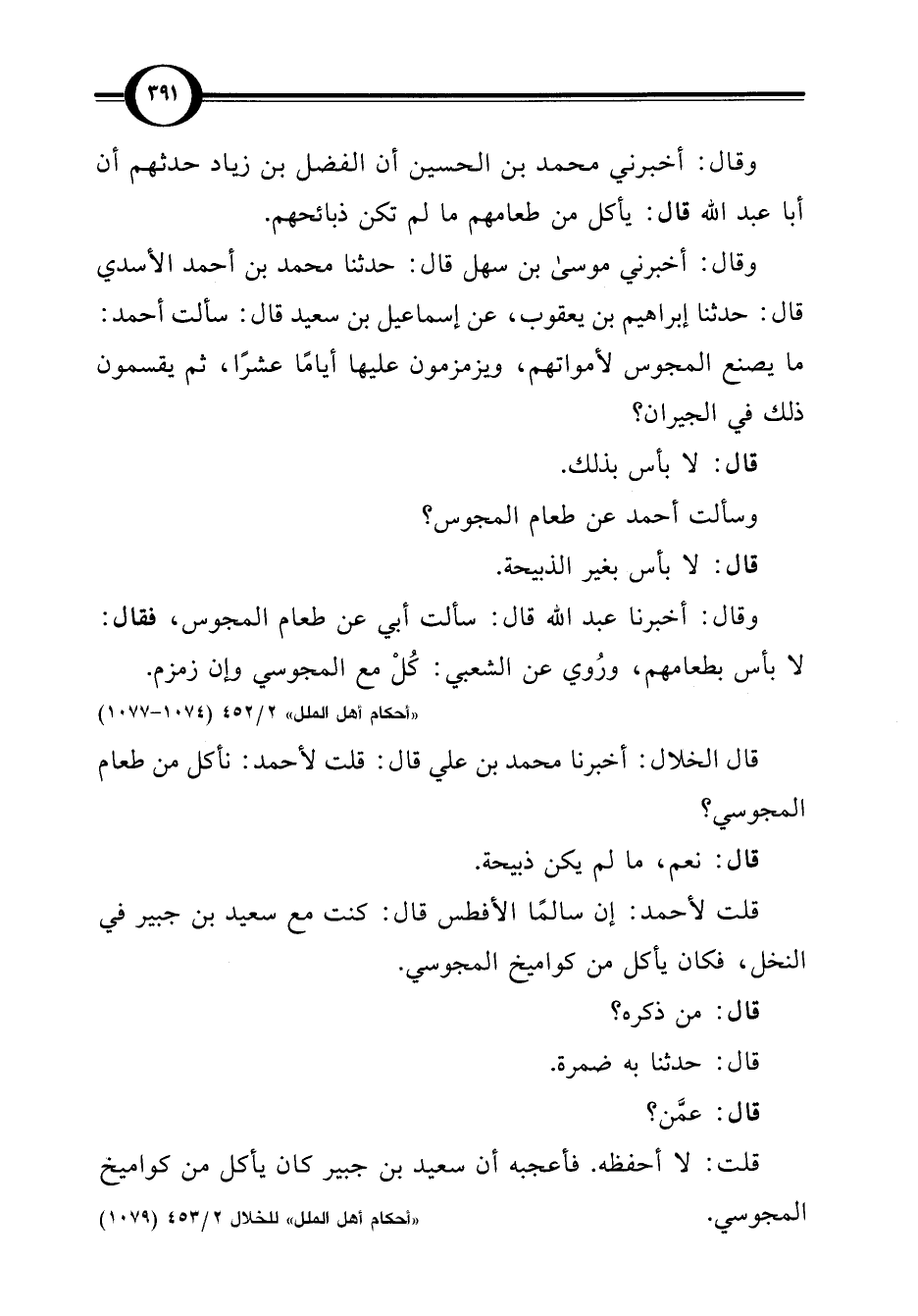 "أحكام أهل الملل" للخلال 2/ 453 (1079)