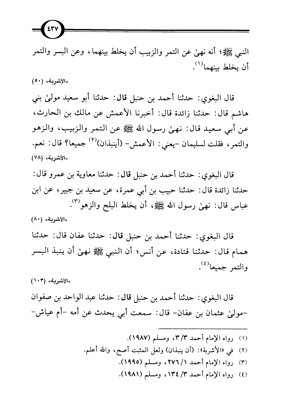 قال البغوي: حدثنا أحمد بن حنبل قال: حدثنا عفان قال: حدثنا همام قال: حدثنا قتادة، عن أنس؛ أن النبي -صلى اللَّه عليه وسلم- نهى أن ينبذ البسر والتمر جميعا (¬4).