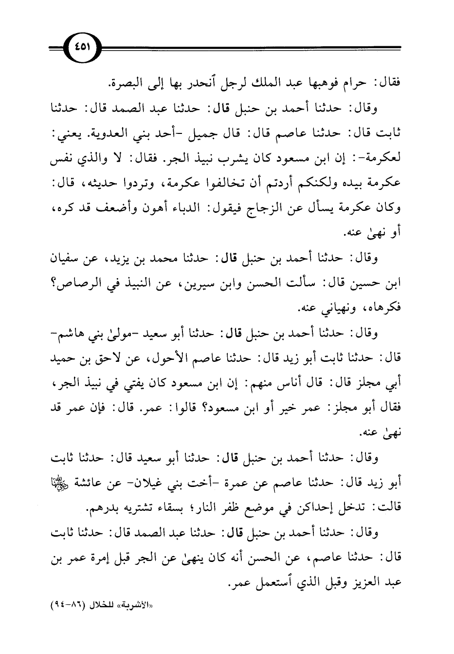"الأشربة" للخلال (86 - 94)