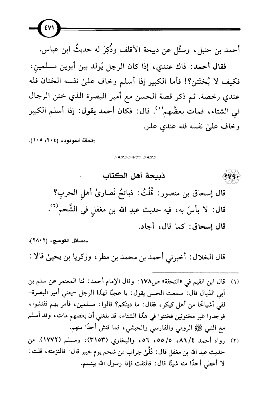 أحمد بن حنبل، وسئُل عن ذبيحة الأقلف وذُكِرَ له حديثُ ابن عباس.