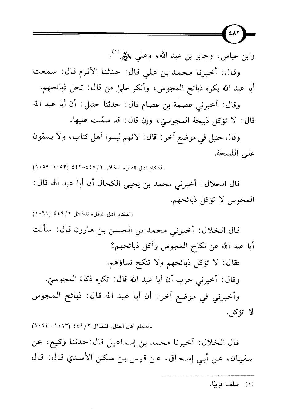 "أحكام أهل الملل" للخلال 2/ 449 (1063 - 1064)