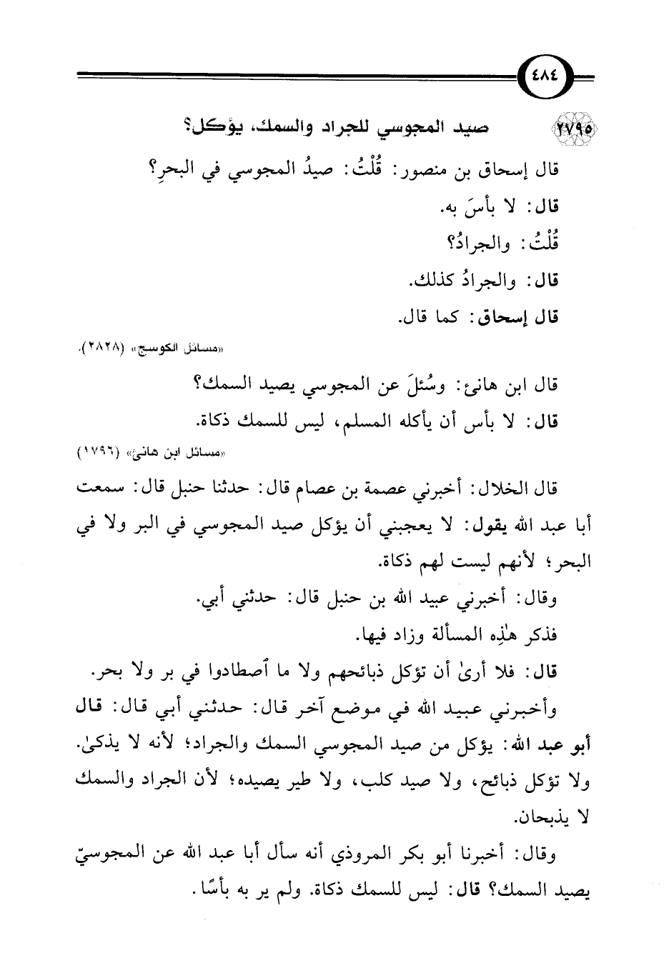 قال إسحاق بن منصور: قُلْتُ: صيدُ المجوسي في البحرِ؟