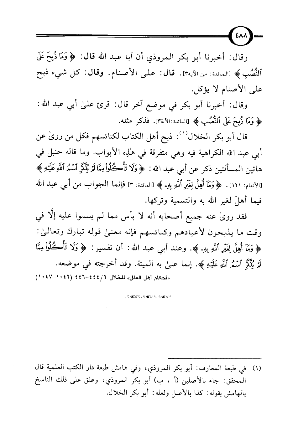 (¬1) في طبعة المعارف: أبو بكر المروذي، وفي هامش طبعة دار الكتب العلمية قال المحقق: جاء بالأصلين (أ، ب) أبو بكر المروذي، وعلق على ذلك الناسخ بالهامش بقوله: كذا بالأصل ولعله: أبو بكر الخلال.