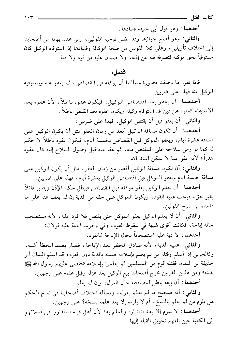 والثاني: أن تكون مسافة الوكيل أقصر من زمان العفو، مثل أن يكون الوكيل على مسافة خمسة أيام ويعفو الموكل قبل اقتصاص الوكيل بعشرة أيام، فهذا على ضربين: