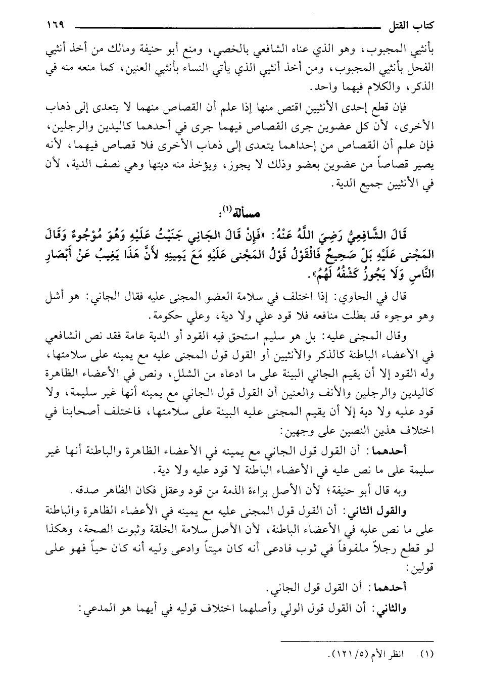 قال الشافعي رضي الله عنه: ((فإن قال الجاني جنيت عليه وهو موجوء، وقال المجني عليه بل صحيح فالقول قول المجني عليه مع يمينه لأن هذا يغيب عن أبصار الناس ولا يجوز كشفه لهم)).