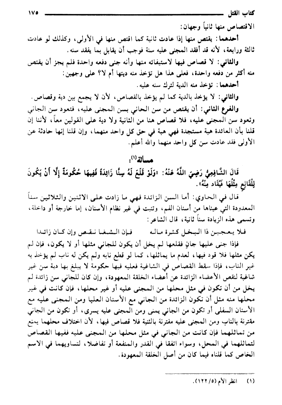 والفرع الثاني: أن يقتص من سن الجاني بسن المجني عليه، فتعود سن الجاني وتعود سن المجني عليه، فلا قصاص هنا من الثانيةً ولا دية على القولين معًا، لأننا إن قلنا بأن العائدة هبةً مستجدةً فهي هبةً في حق كل واحد منهما، وإن قلنا إنها حادثةً عن الأولى فقد عادت سن كل واحد منهما والله أعلم.