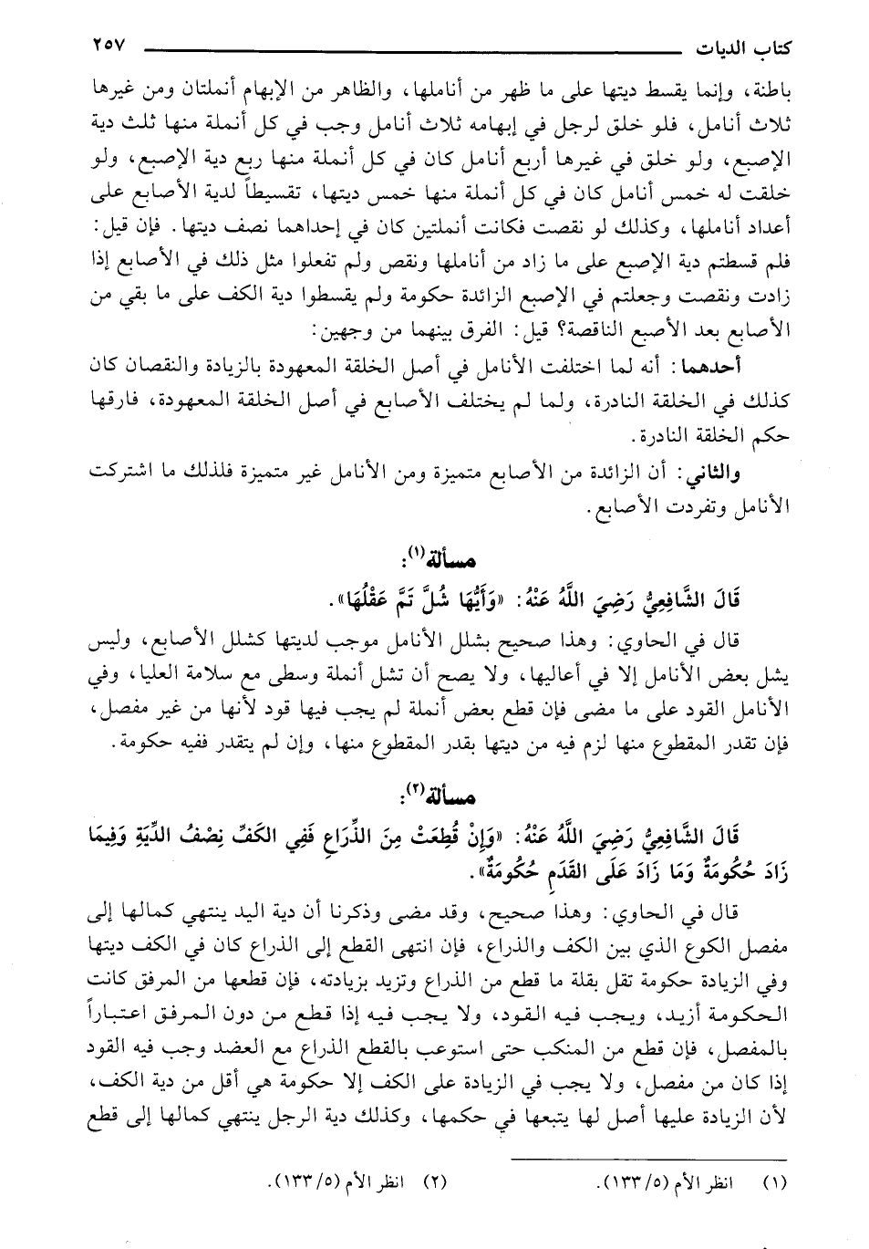 قال الشافعي رضي الله عنه: "وأيها شل تم عقلها".